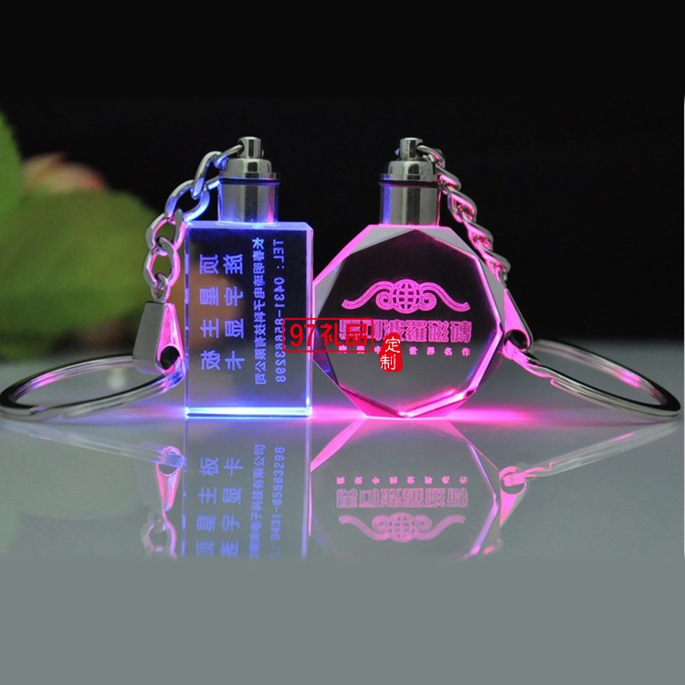 水晶鑰匙扣定制 內(nèi)雕發(fā)光鑰匙扣