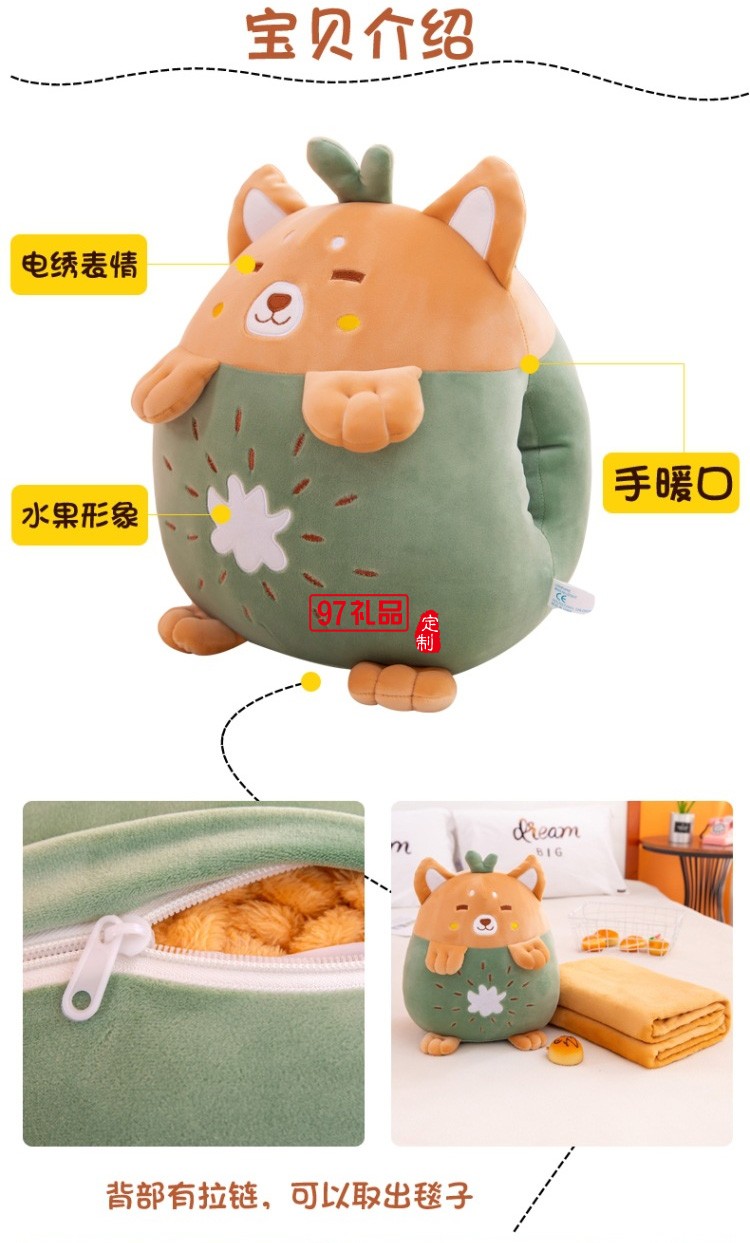 新款水果三合一抱枕被子沙發(fā)靠墊空調(diào)被兒童午睡毯子
