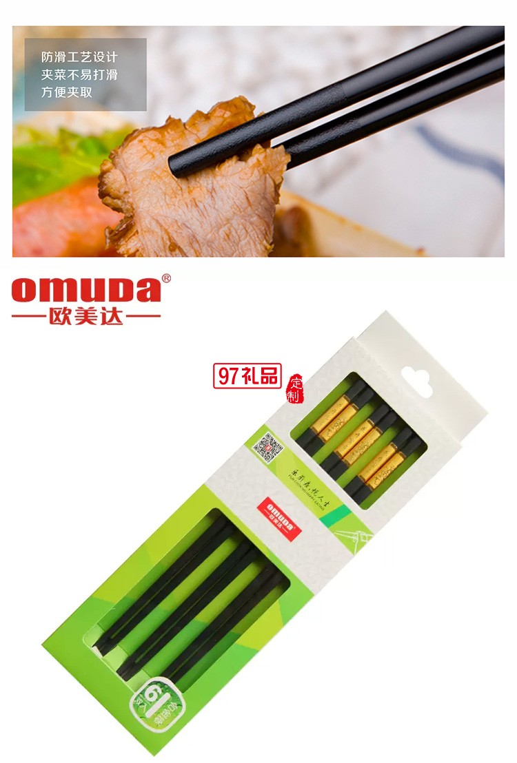 歐美達合金筷子高檔家庭套裝6雙防滑防霉定制公司廣告禮品
