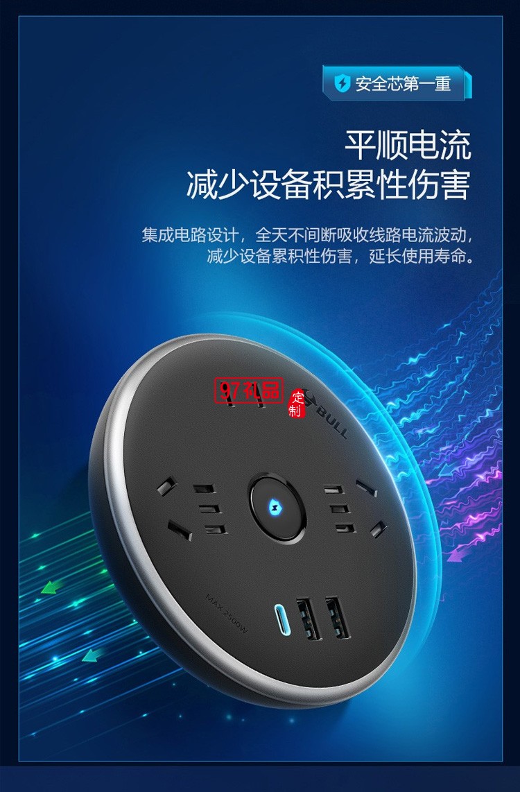 公牛飛碟插座接線板接口多孔位排插R612U定制公司廣告禮品