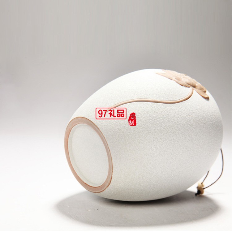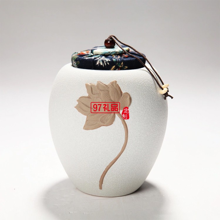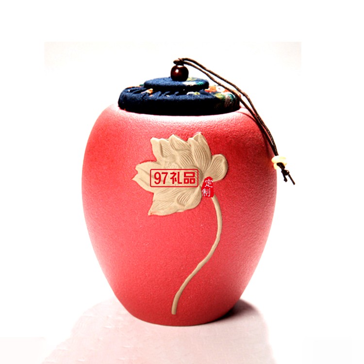 彩陶罐粗陶荷花茶葉罐陶瓷密封罐禮盒裝公司廣告禮品定制