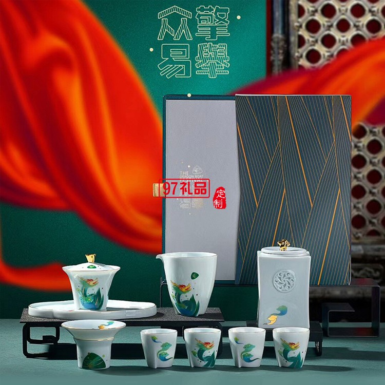 眾擎易舉茶禮青瓷茶葉罐蓋碗禮盒端午節(jié)定制