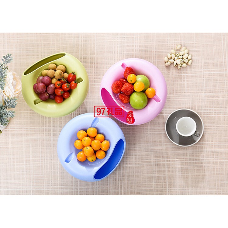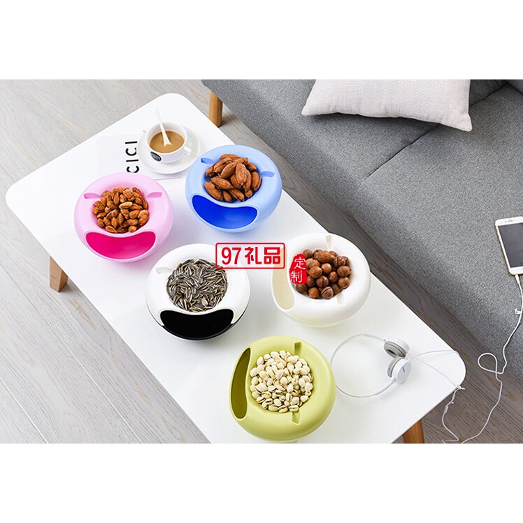 桌面創(chuàng)意懶人垃圾桶塑料雙層客廳臥室可置手機(jī)果盤(pán)瓜子盤(pán)
