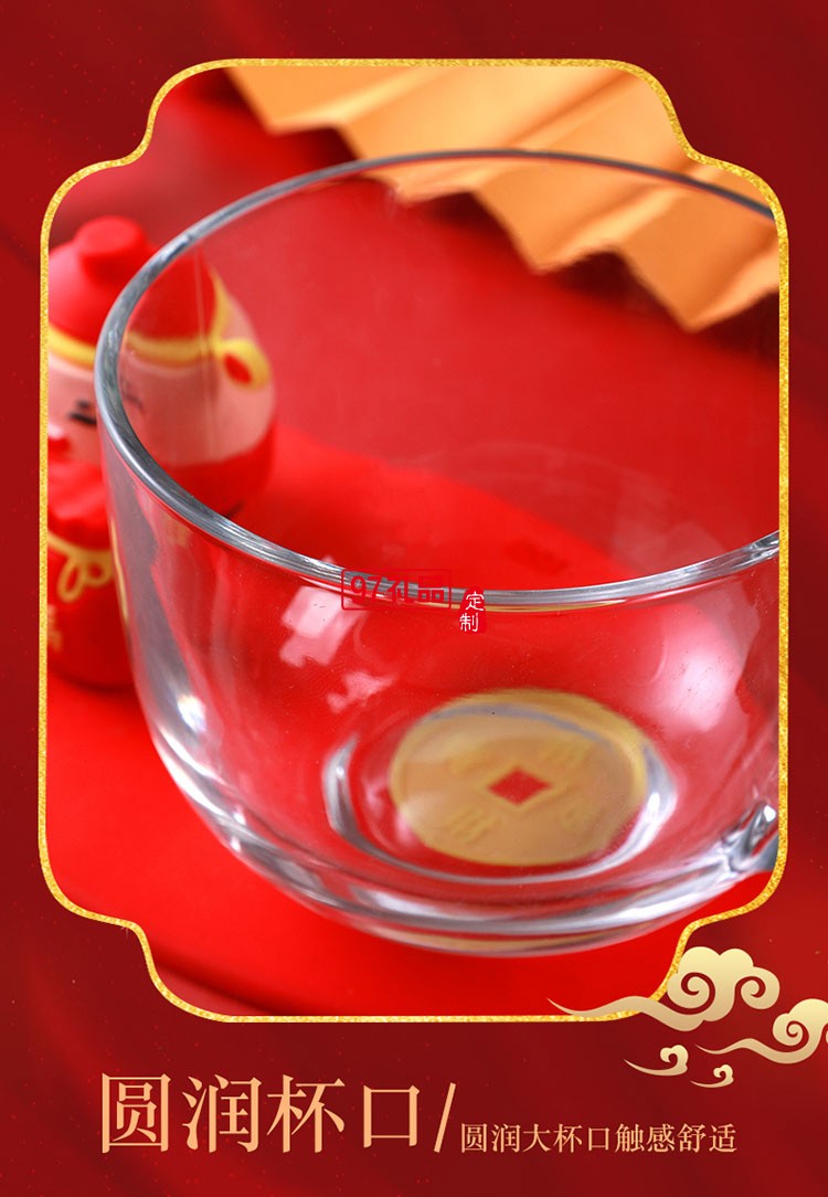 產(chǎn)品特點(diǎn): 杯子玻璃+PVC杯墊,攪拌勺不銹鋼材質(zhì)。獨(dú)特的財(cái)神爺和福袋設(shè)計(jì),寓意招財(cái)進(jìn)寶。原創(chuàng)設(shè)計(jì),圖案可定制。