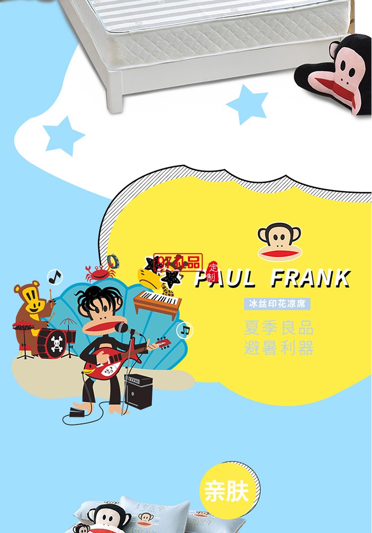 冰絲印花席面,精美絲滑,色彩鮮亮,活性印染,不褪色,無刺激,舒爽宜人,舒適健康。三明治透氣網(wǎng)眼設(shè)計,平整不褶皺,透氣性好。四角采用彈力帶設(shè)計,可以牢固的固定席面與床墊,免去席滑動的困擾。采用同色包邊服帖,包邊工整,針腳細(xì)密嚴(yán)實,能有效保護席子勾絲,不易變形。包邊信封式枕套設(shè)計,美觀實用,平整順滑,高端大氣。